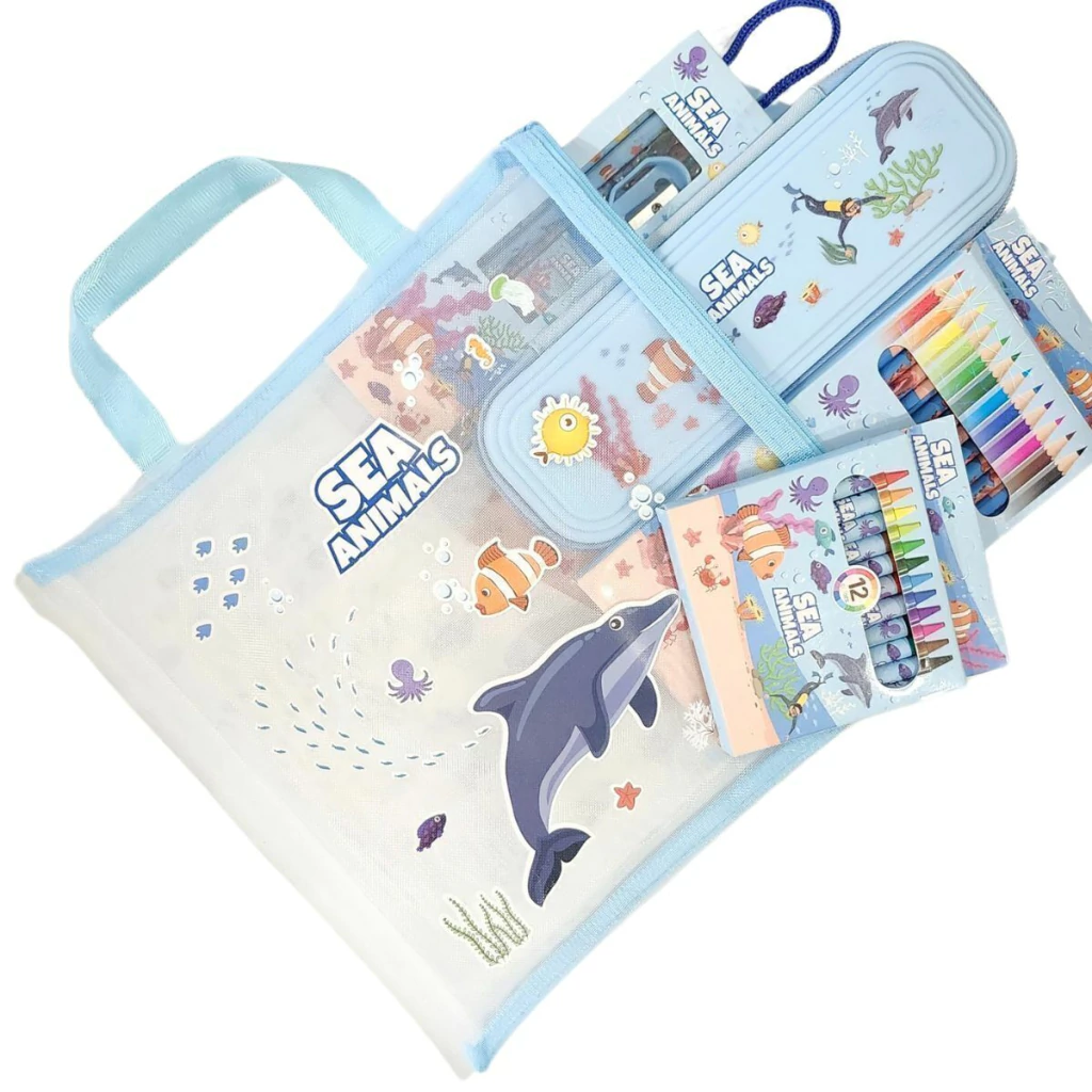 En bolsa de 25 cm x 25 cm estampada conteniendo: